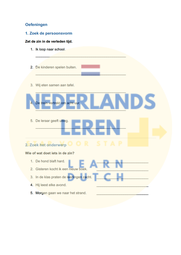 Ideaal voor basisschoolleerlingen, middelbare scholieren of iedereen die Nederlands wil verbeteren. Dit 6-pagina's tellende PDF-oefenblad is printbaar, gebruiksvriendelijk en bevordert diepgaand begrip van grammatica. Perfect voor in de klas, huiswerk of zelfstudie – verbeter je taalvaardigheden stap voor stap!